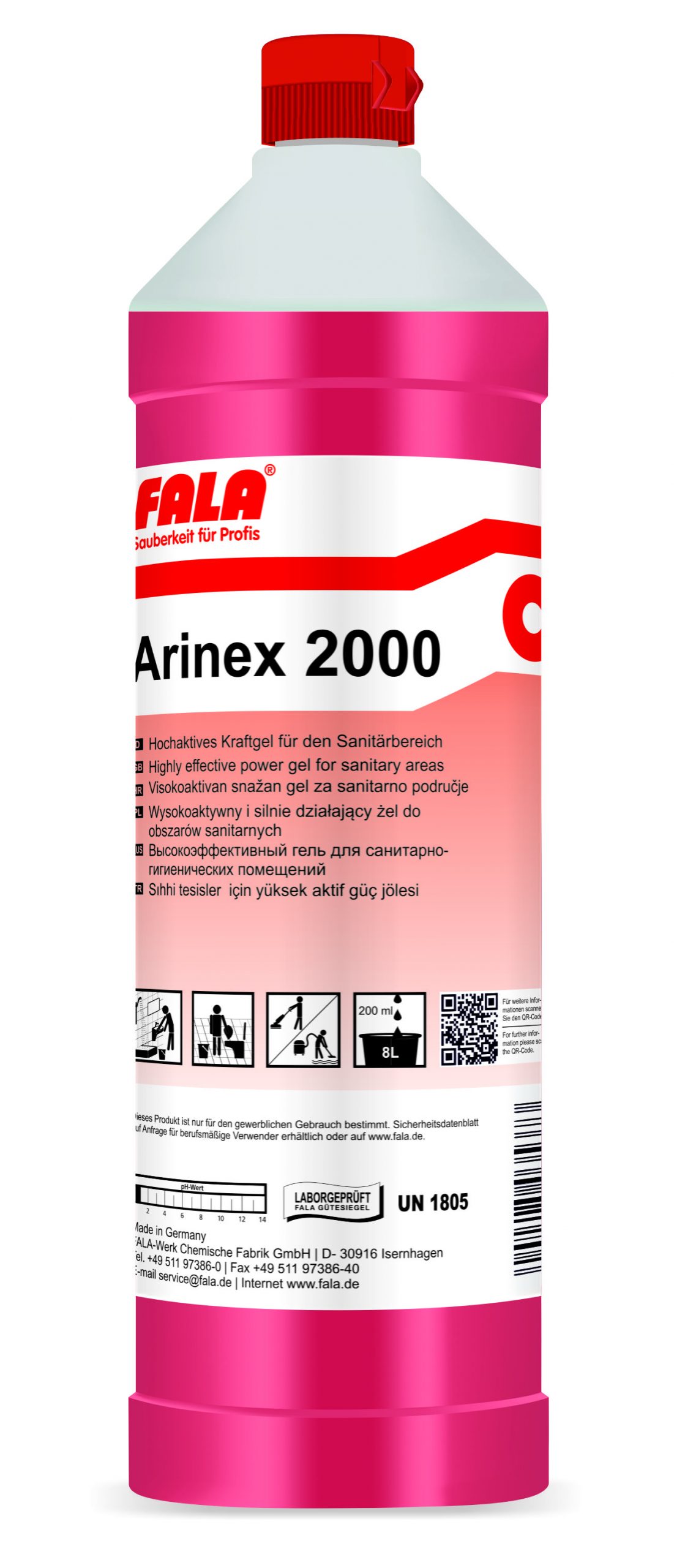 Der Fala Arinex 2000 Sanitärreiniger 1 Liter ist ein leistungsstarker Spezialreiniger zur gründlichen Reinigung von Sanitärflächen und Nassbereichen.