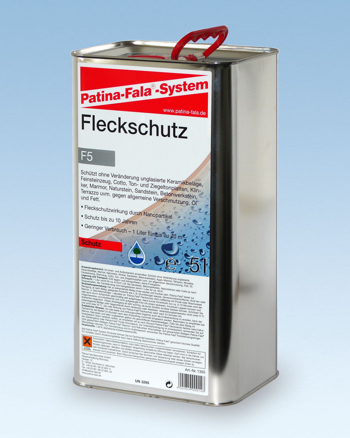 Der Patina-Fala F5 Fleckschutz 5 Liter ist eine hochwertige Imprägnierung zum Schutz saugfähiger mineralischer Oberflächen vor Verschmutzungen und Fleckenbildung.